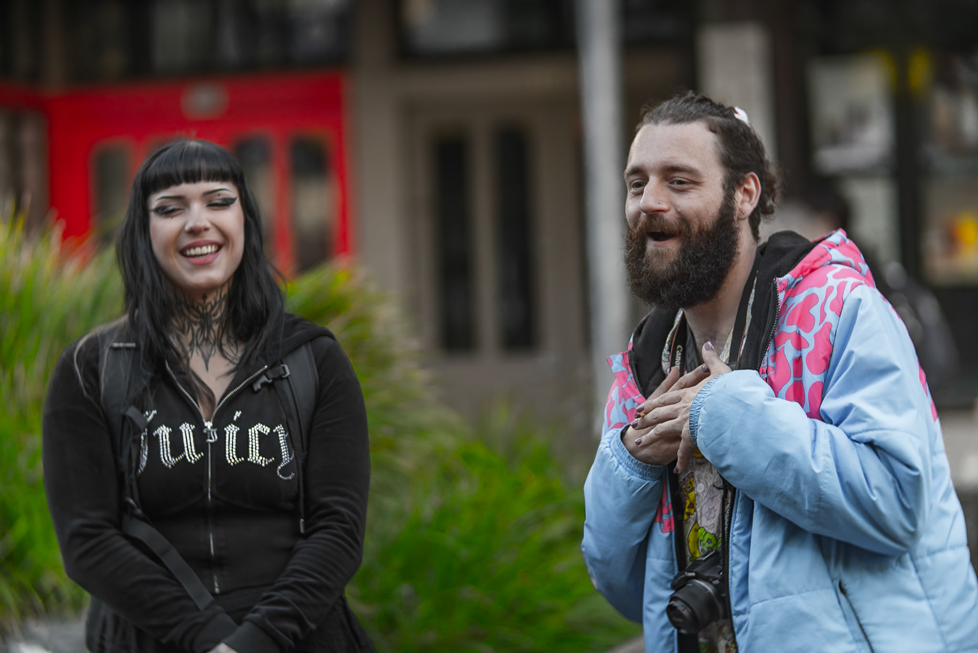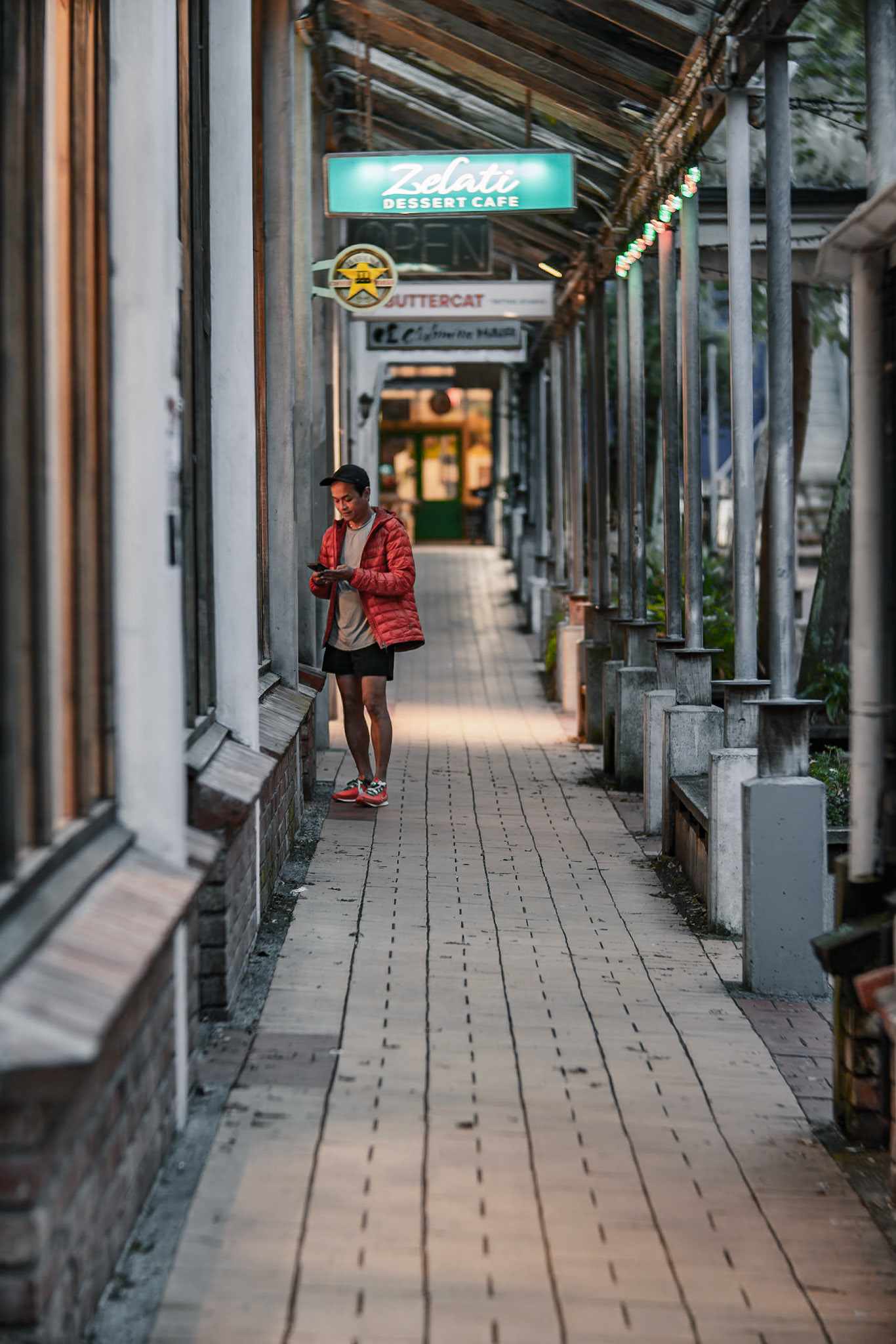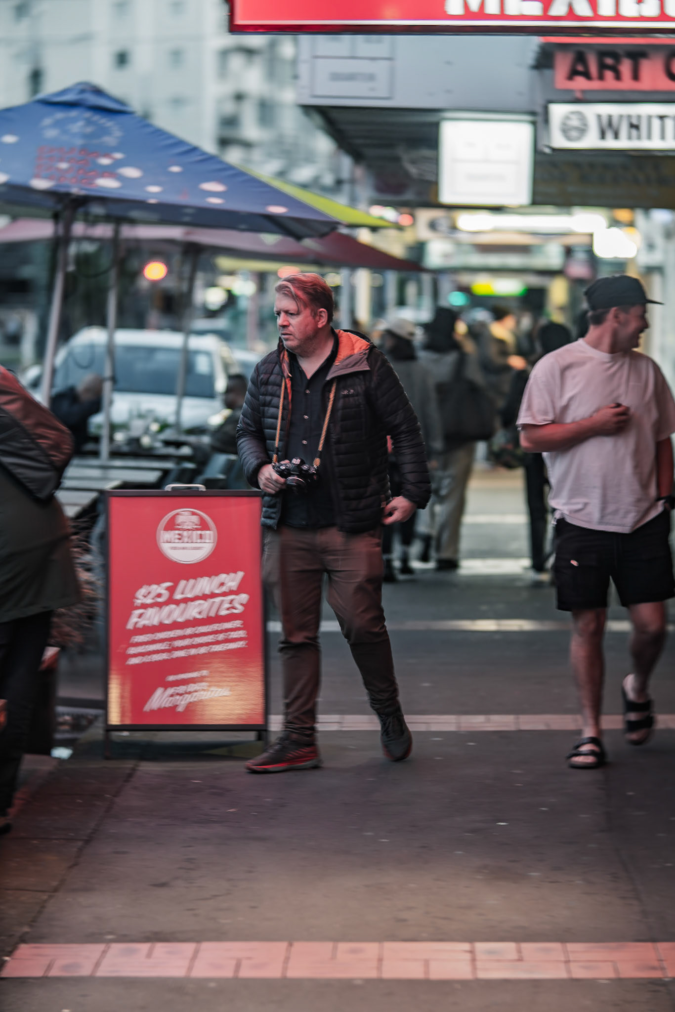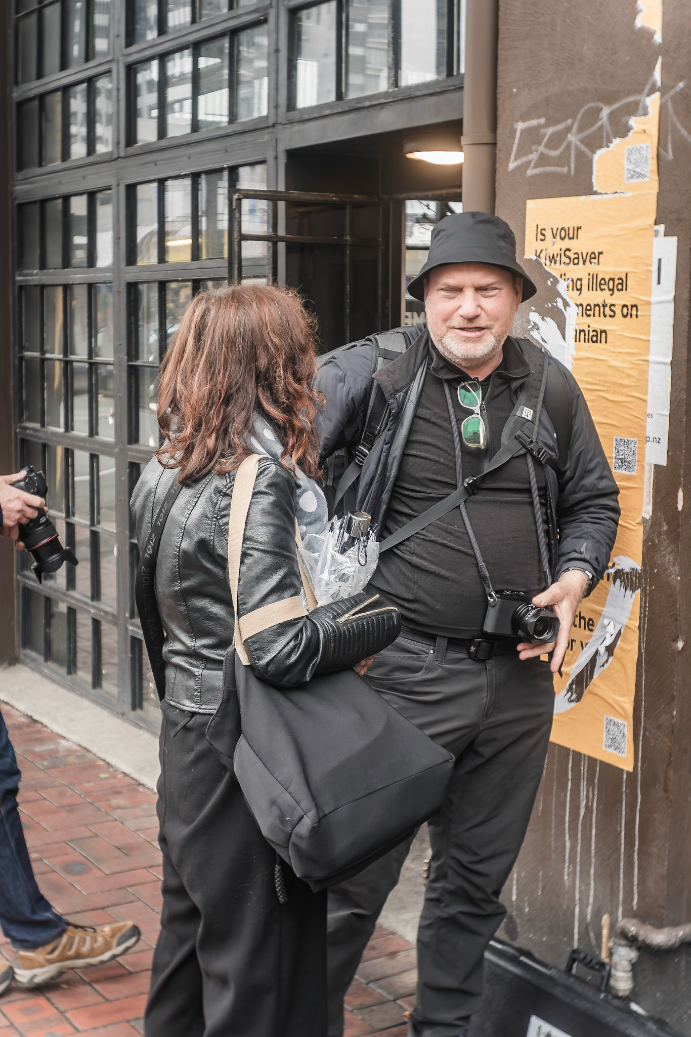 Unknown man enjoying drunk food outside Shady Lady Bar on Courtney Place