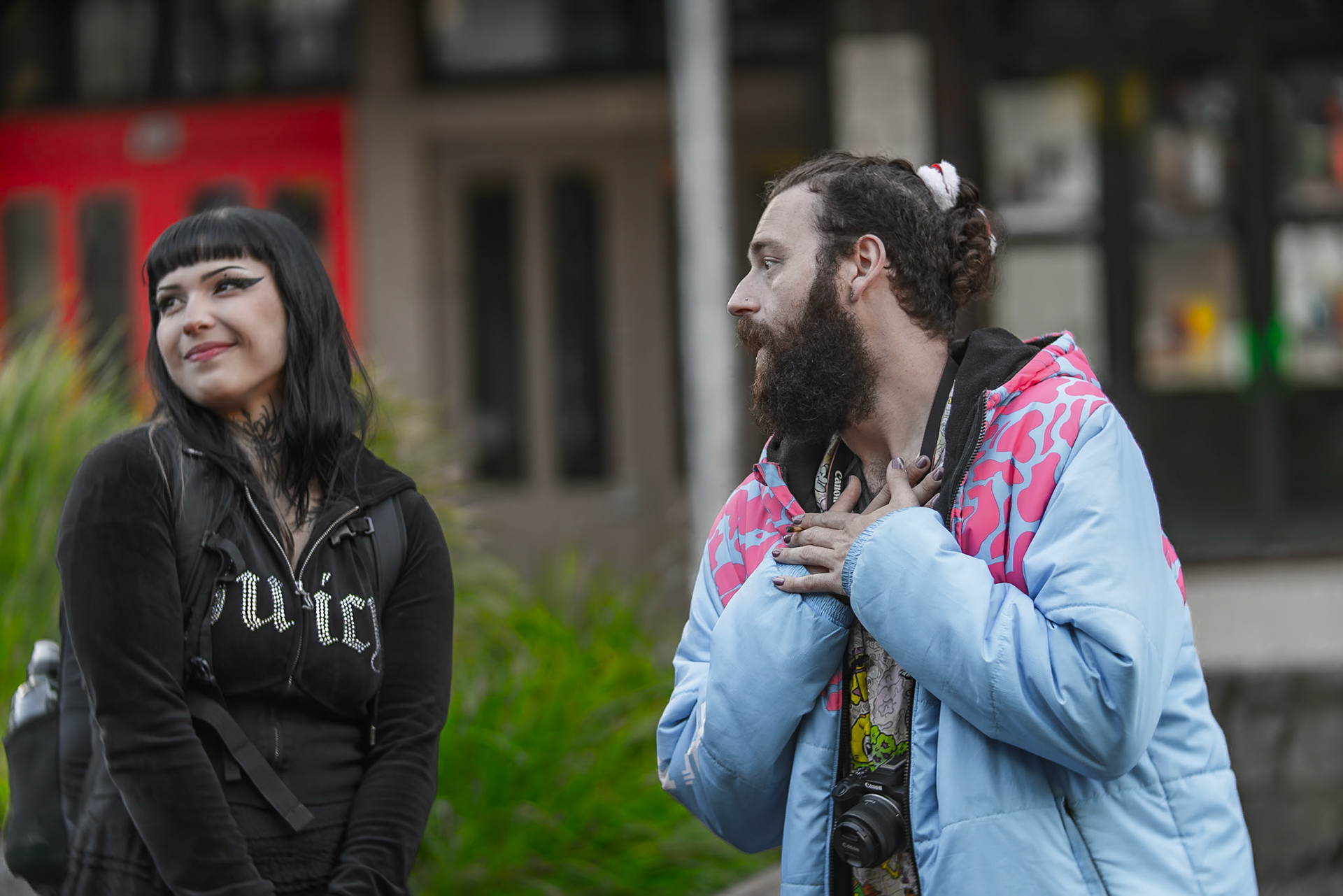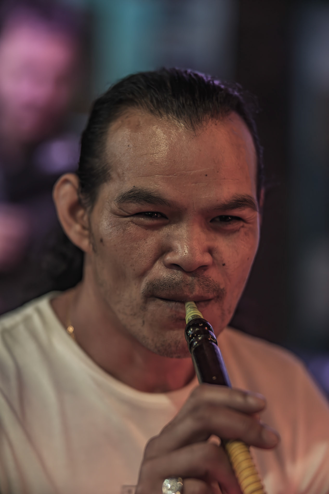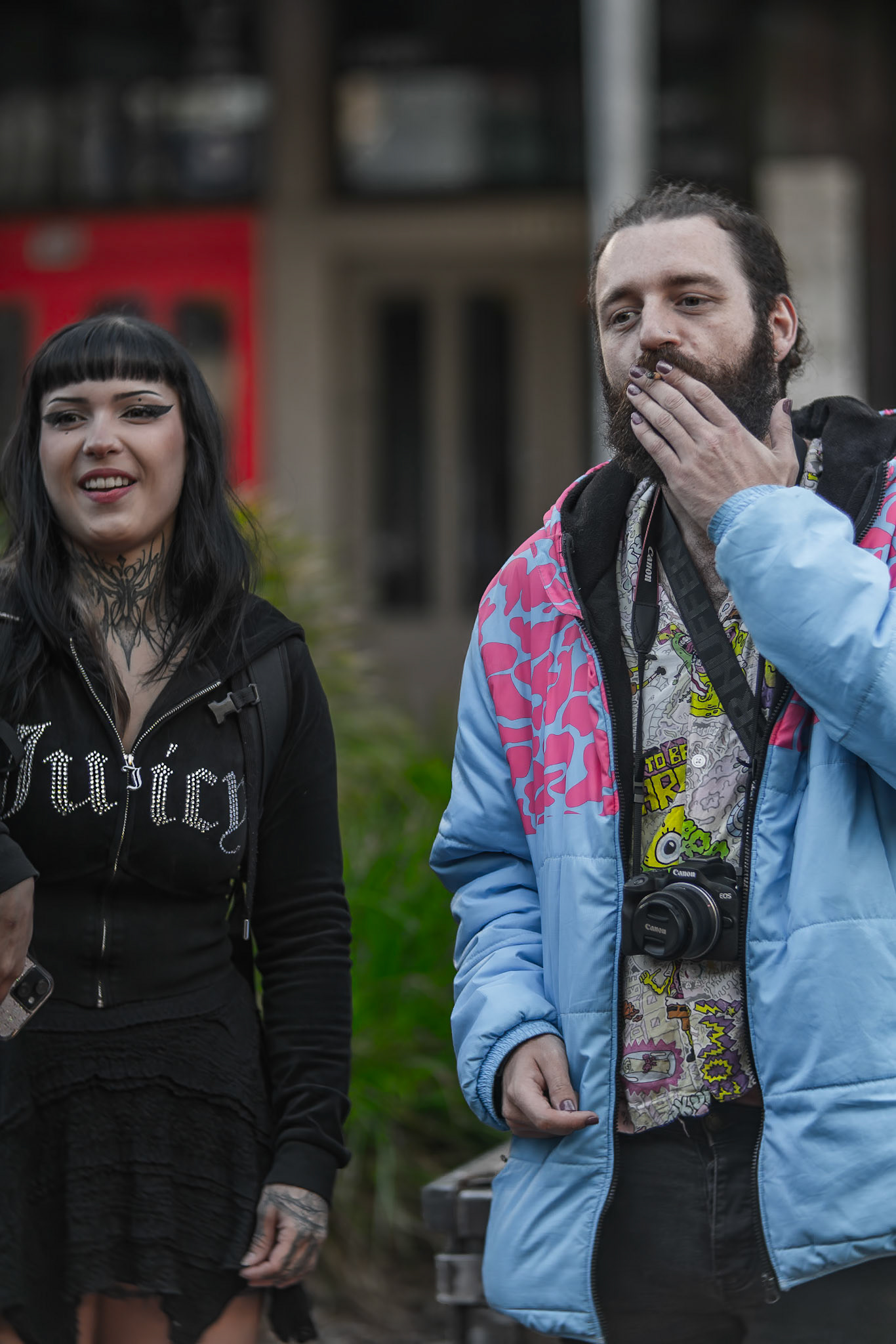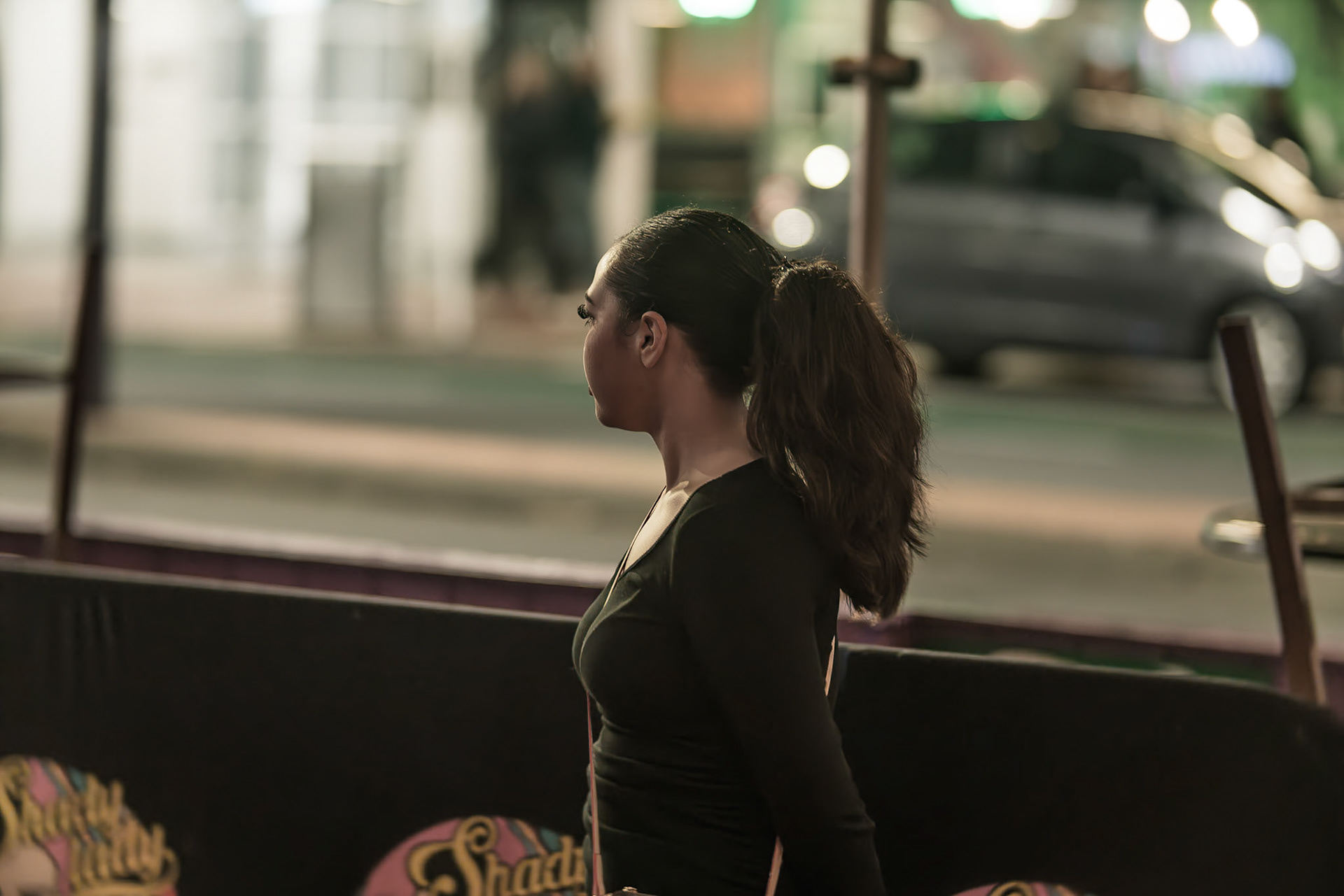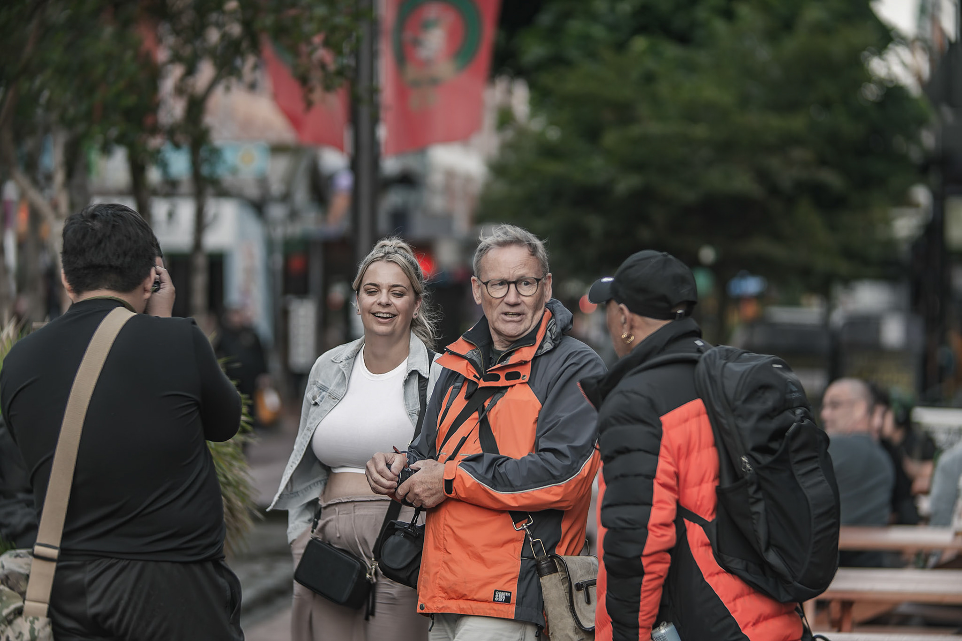 Unknown man enjoying drunk food outside Shady Lady Bar on Courtney Place