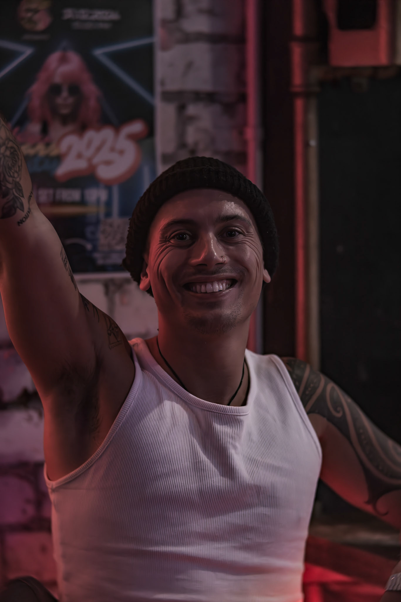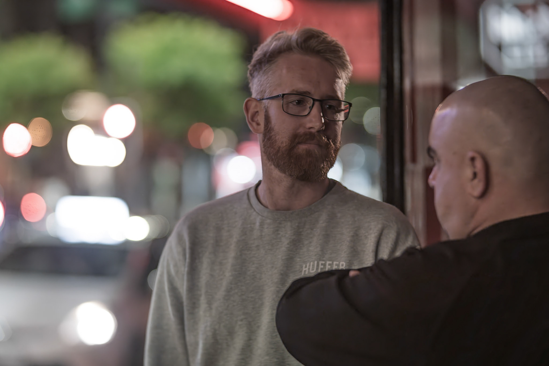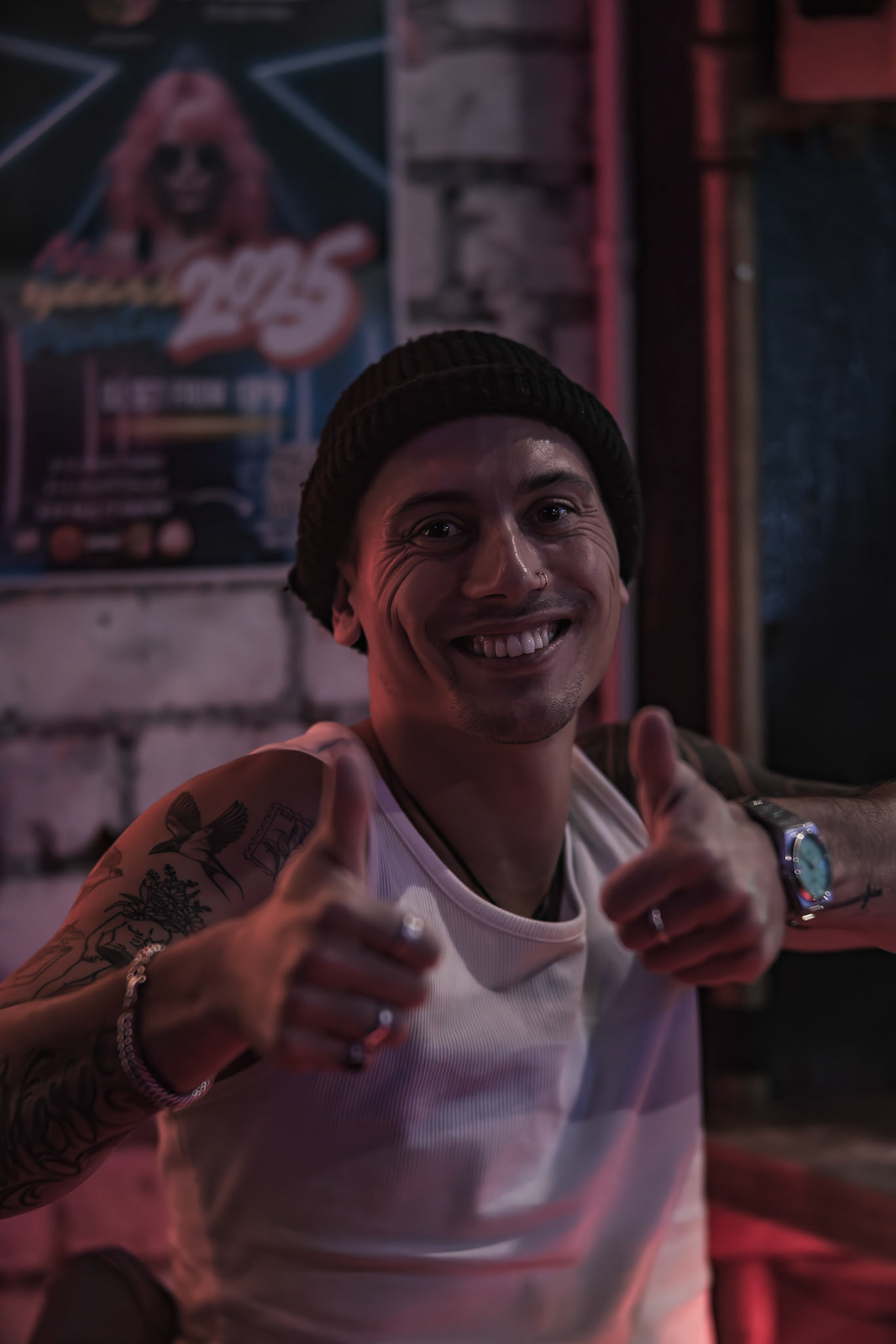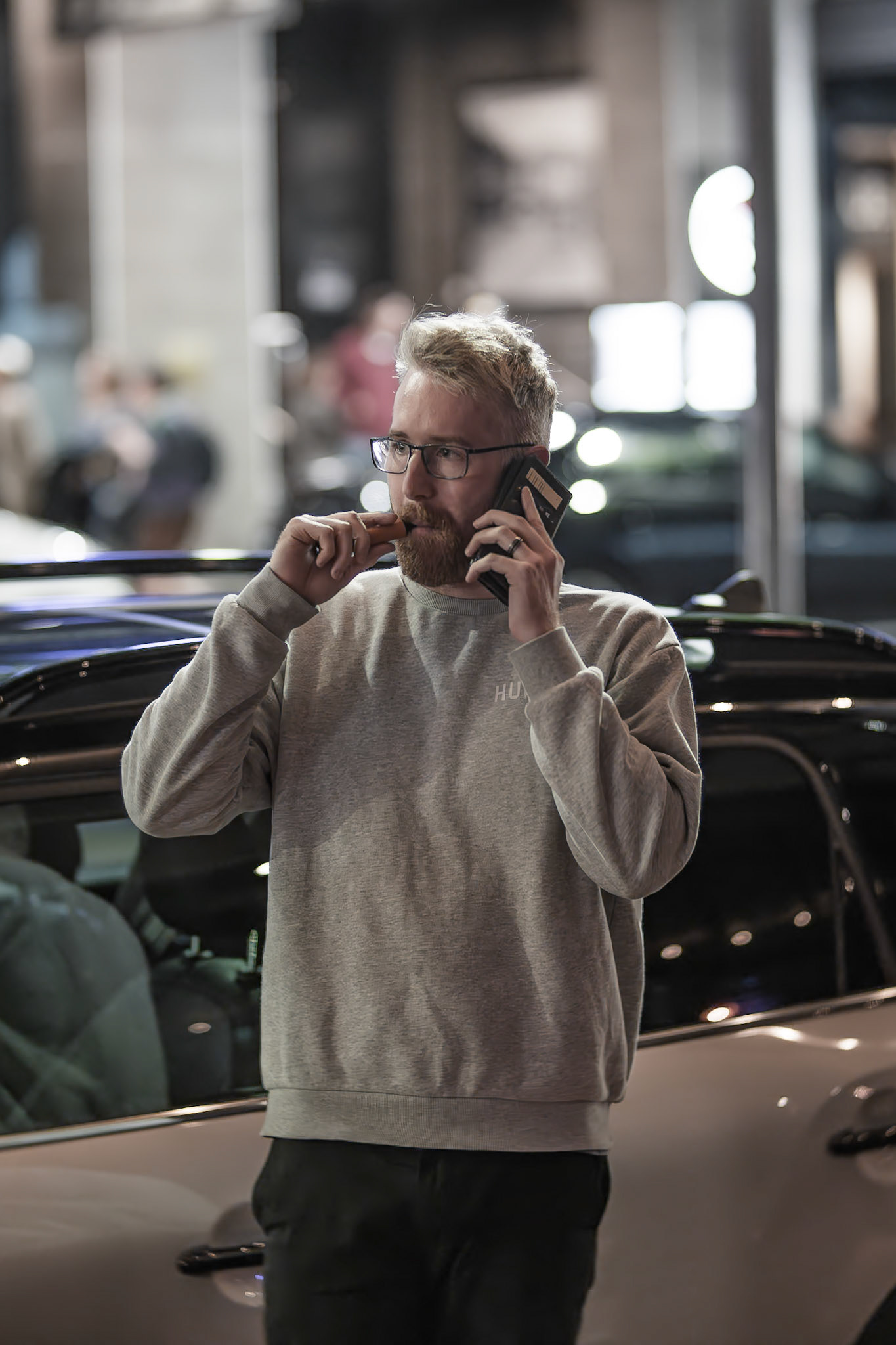 Unknown man enjoying drunk food outside Shady Lady Bar on Courtney Place