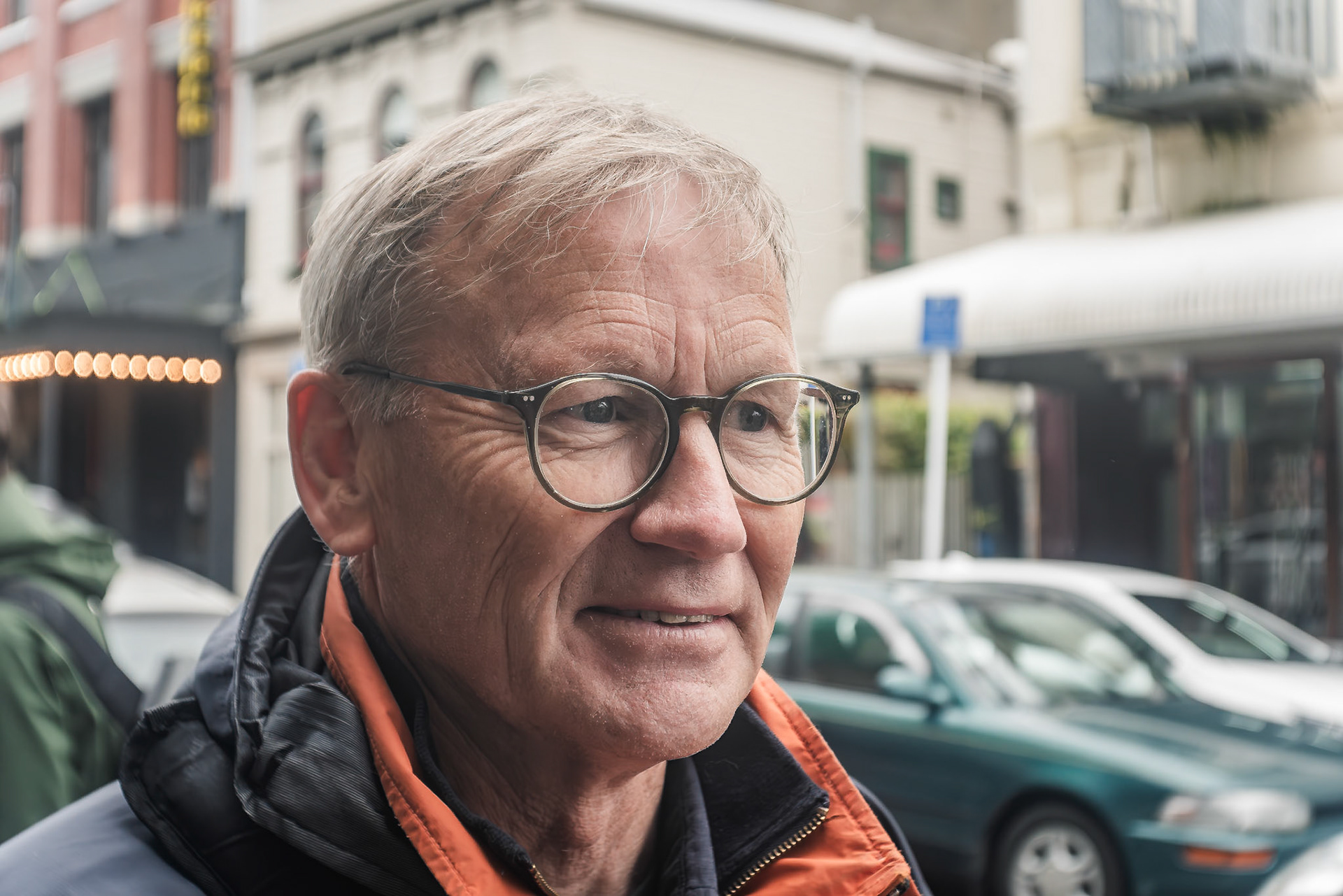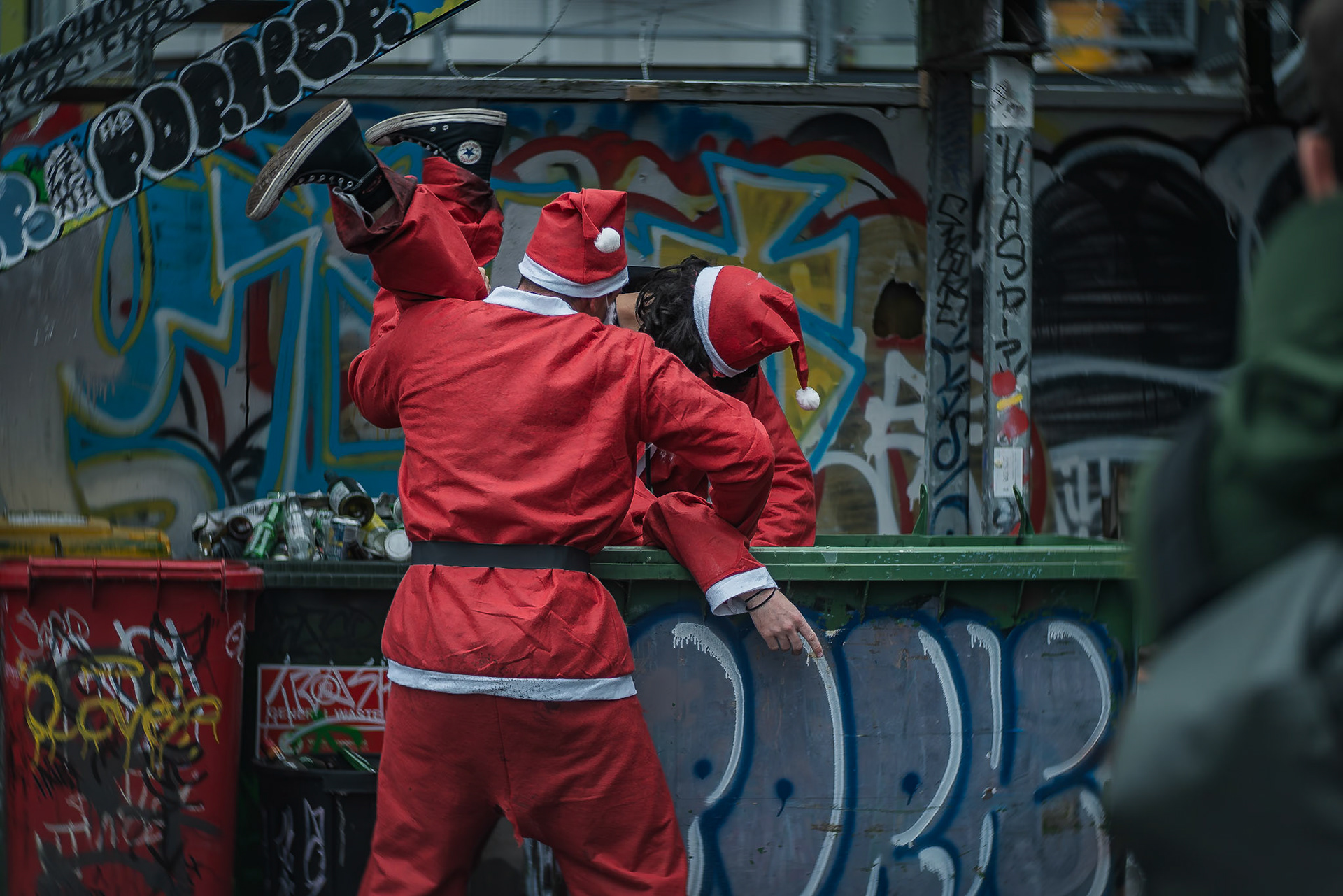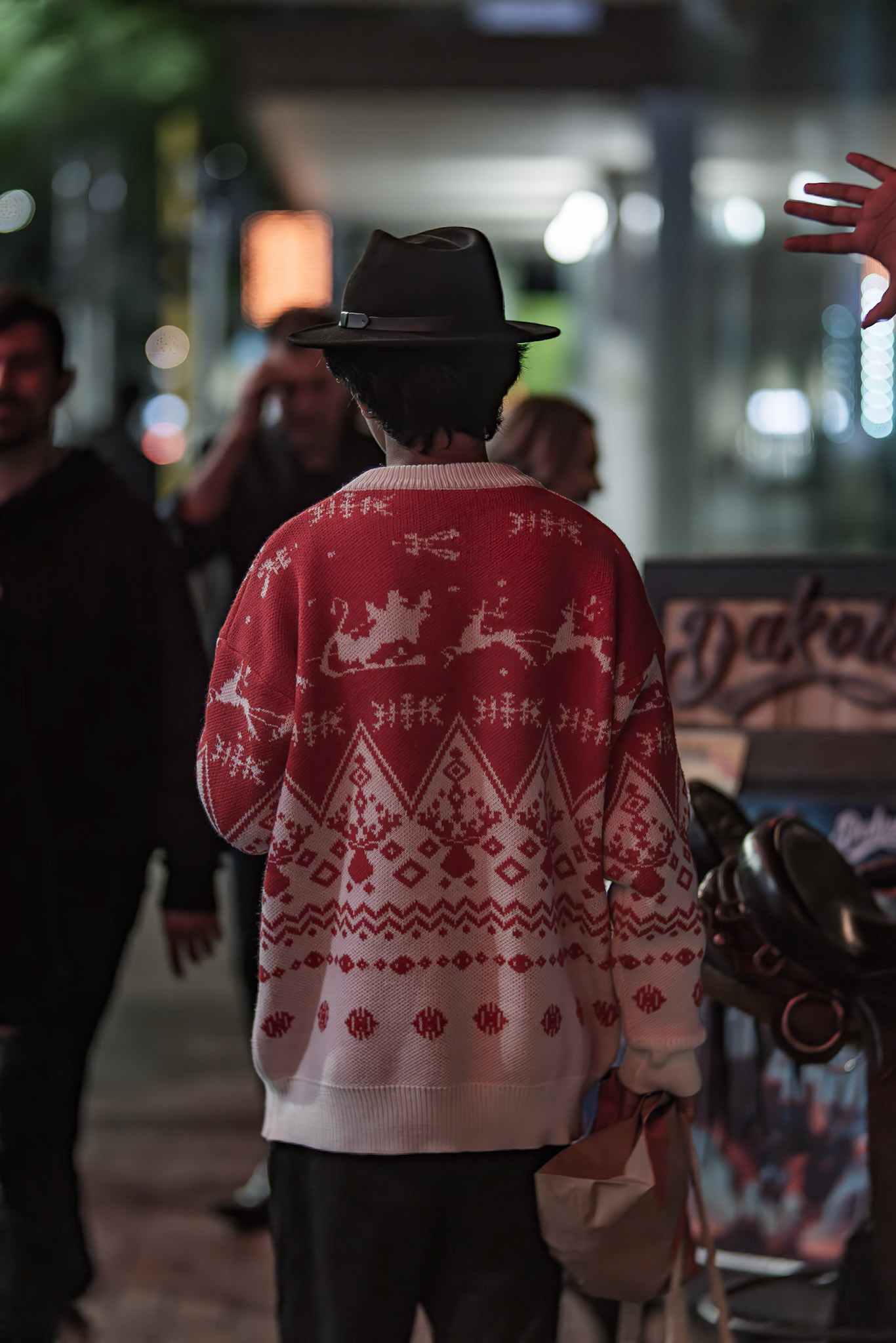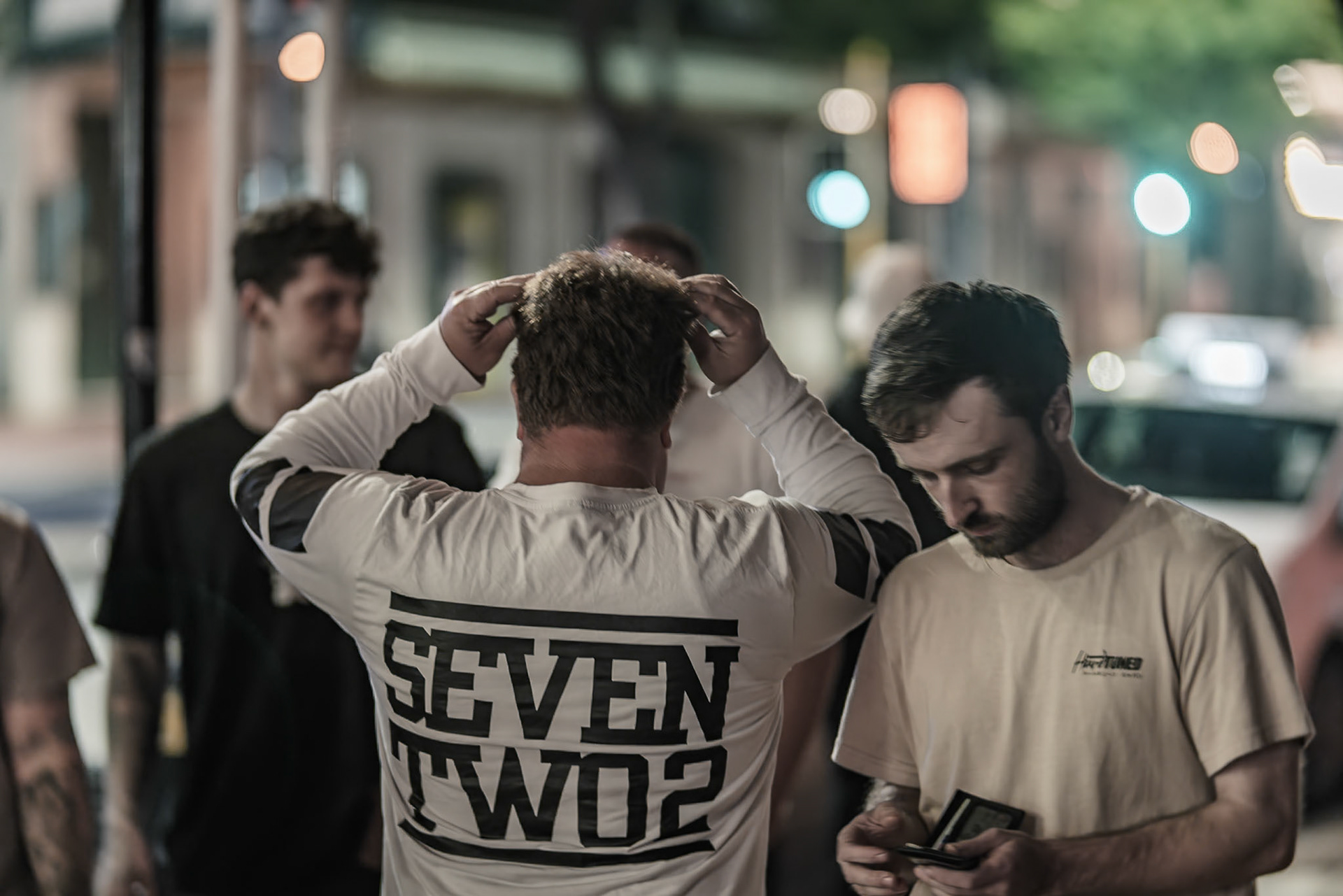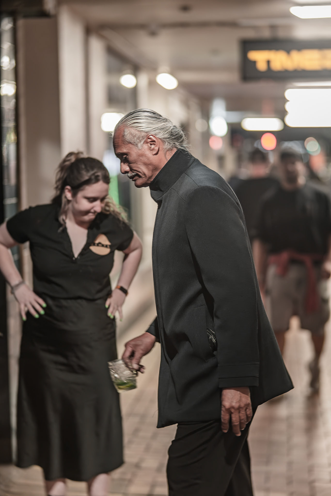 Unknown man enjoying drunk food outside Shady Lady Bar on Courtney Place